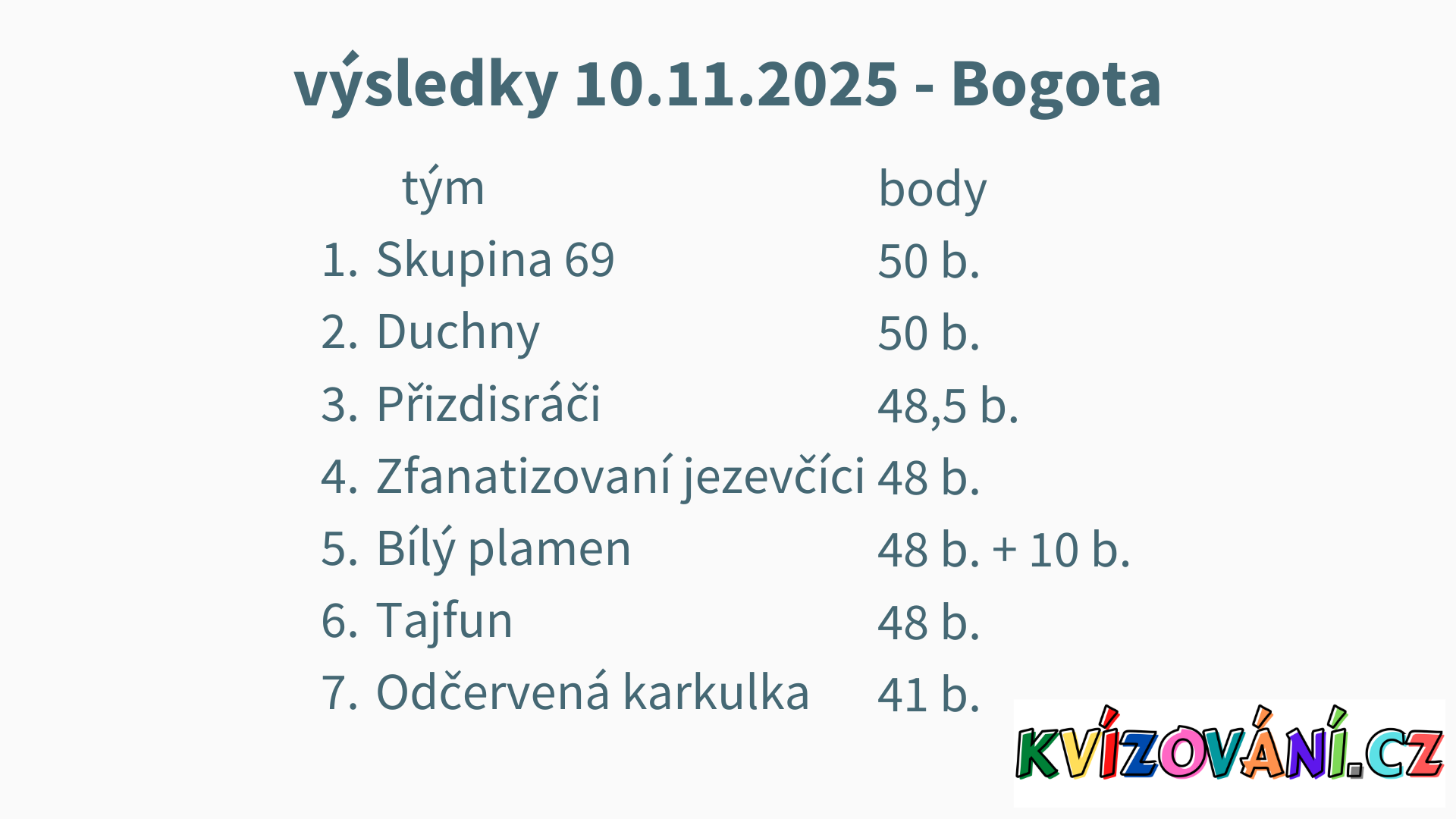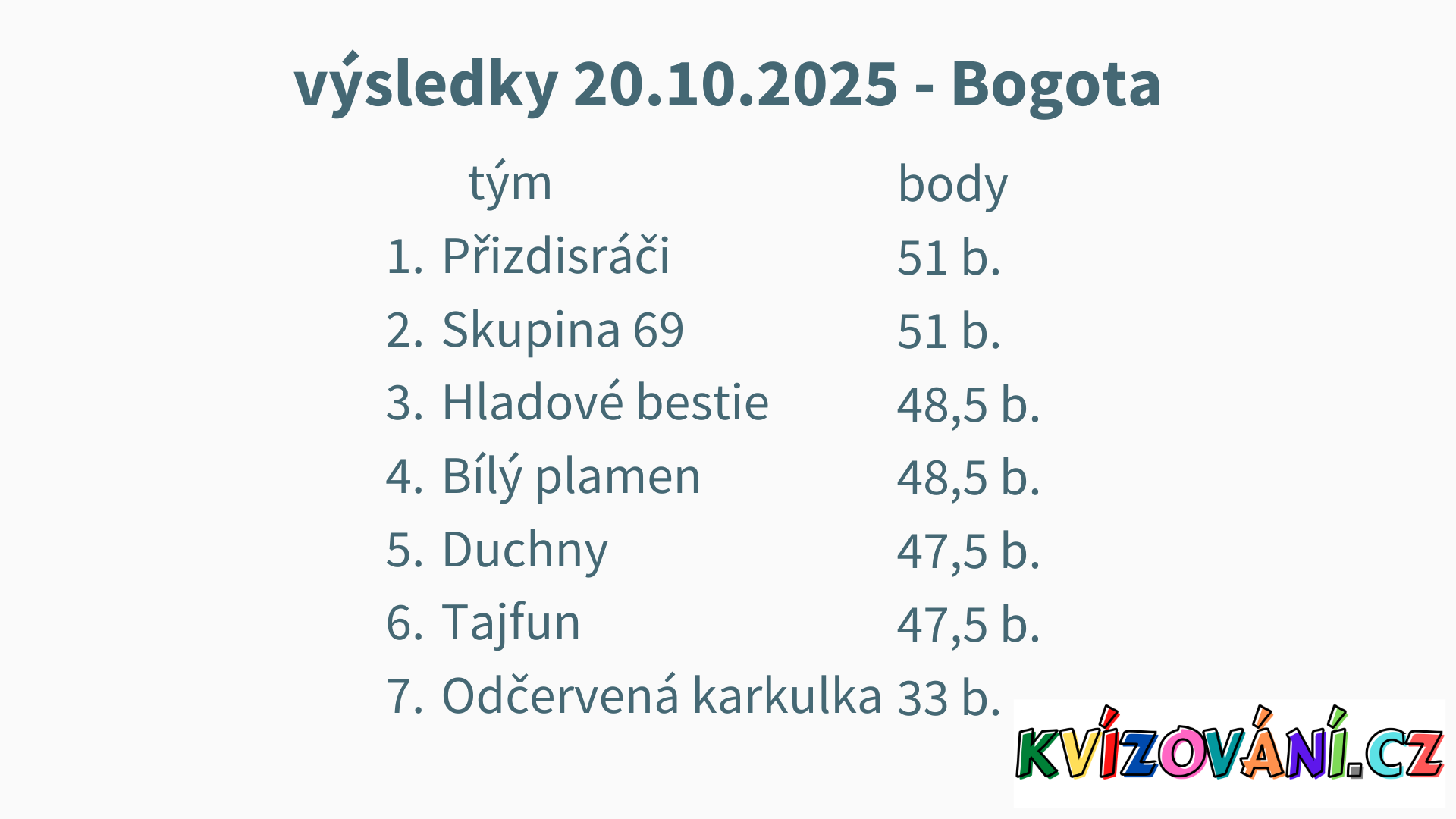 Výsledky U Paseků - pátek
