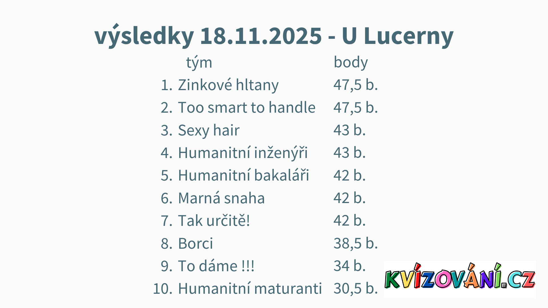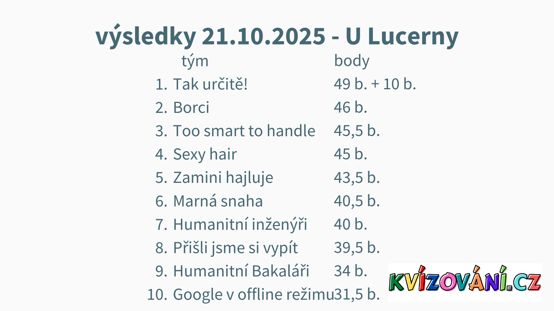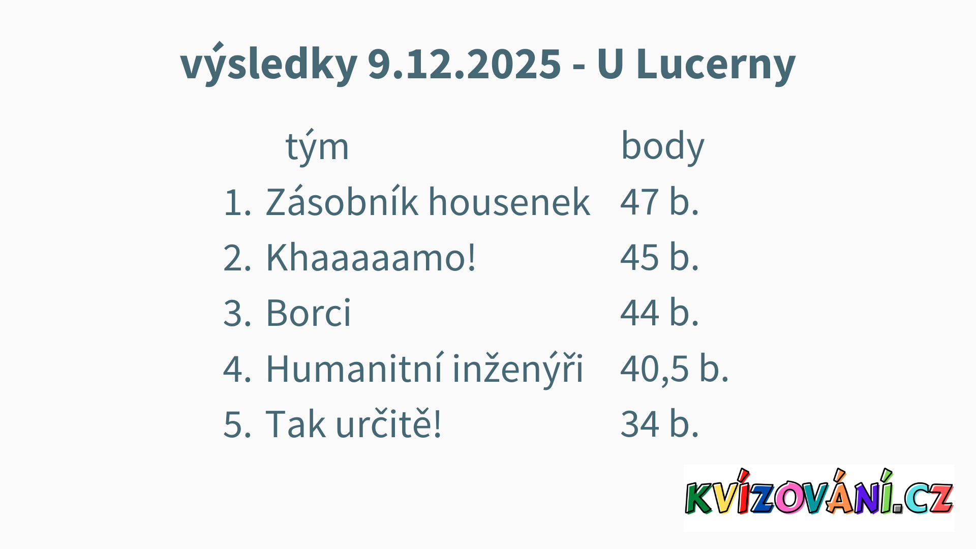 Výsledky Lucerna - Úterý