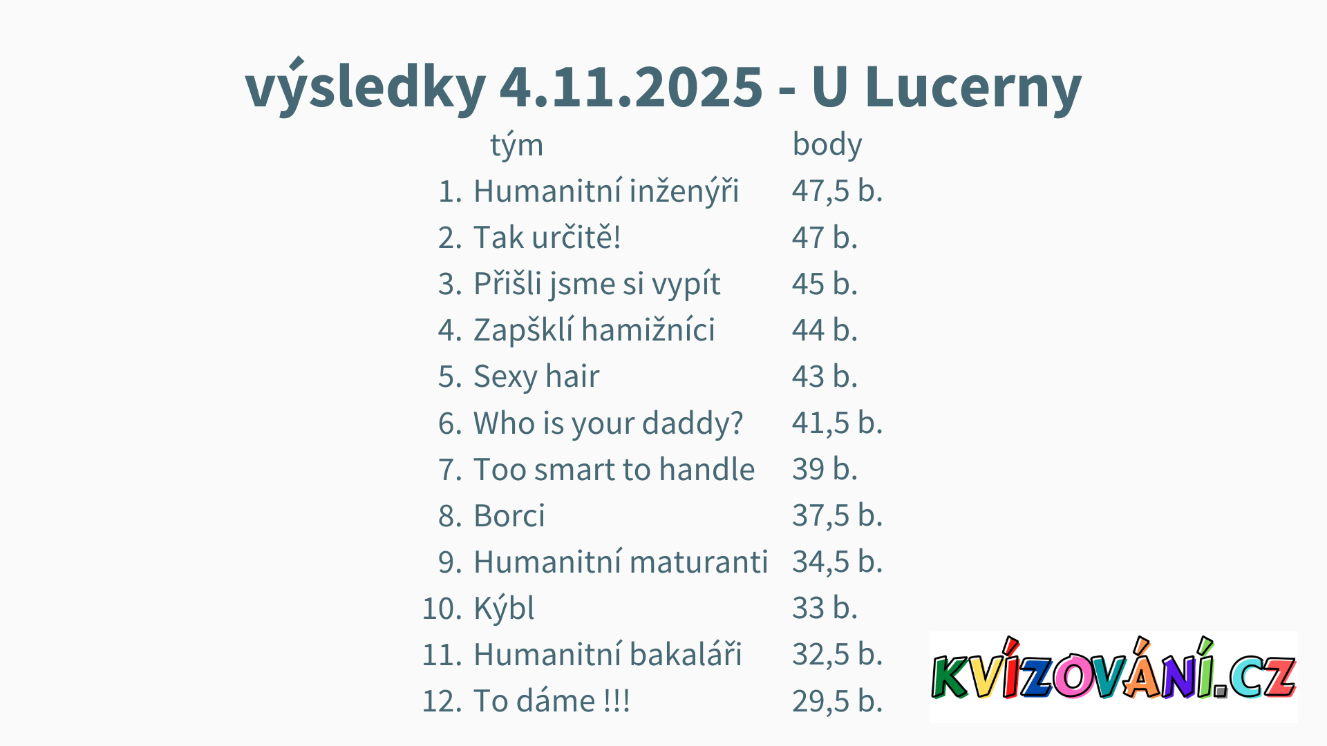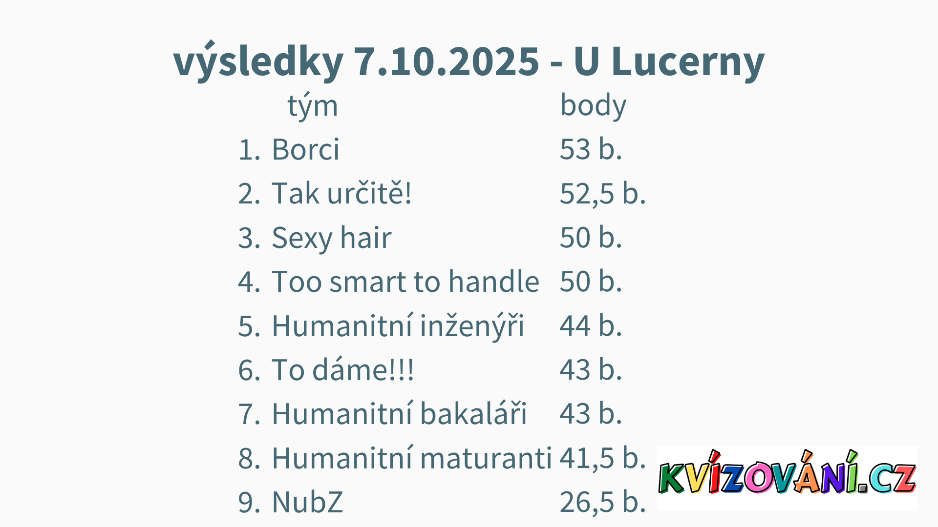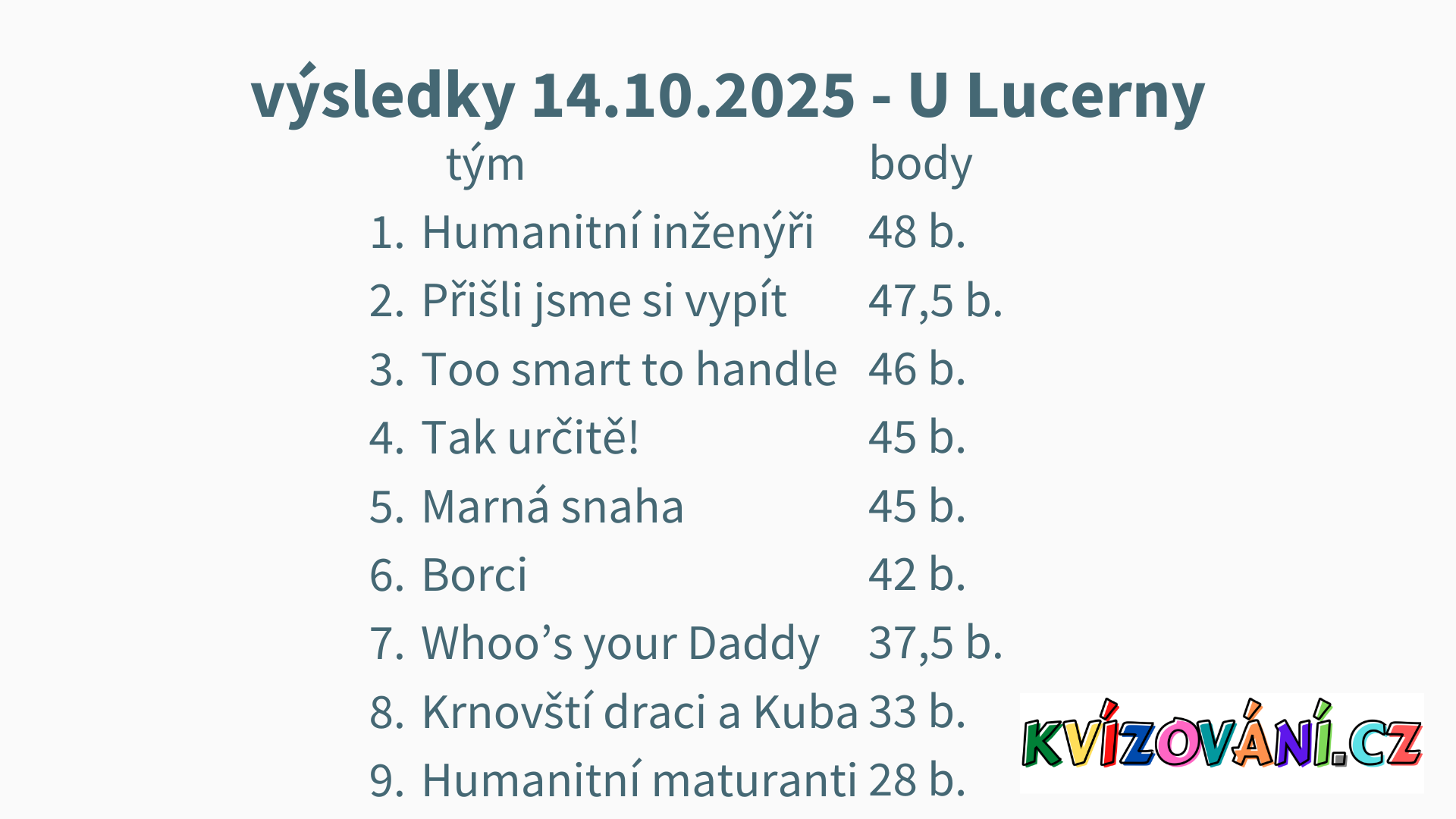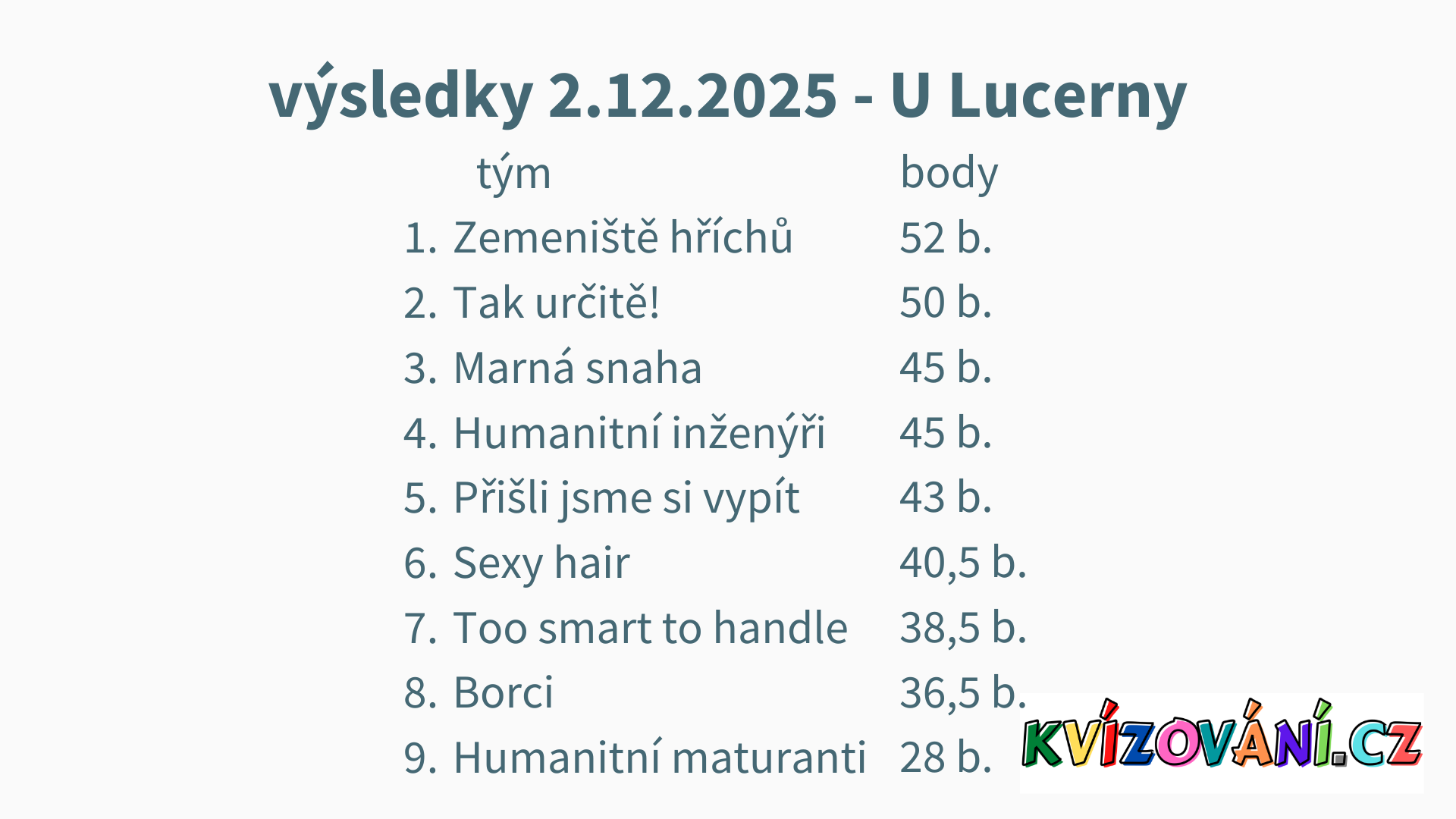 Výsledky Lucerna - Úterý