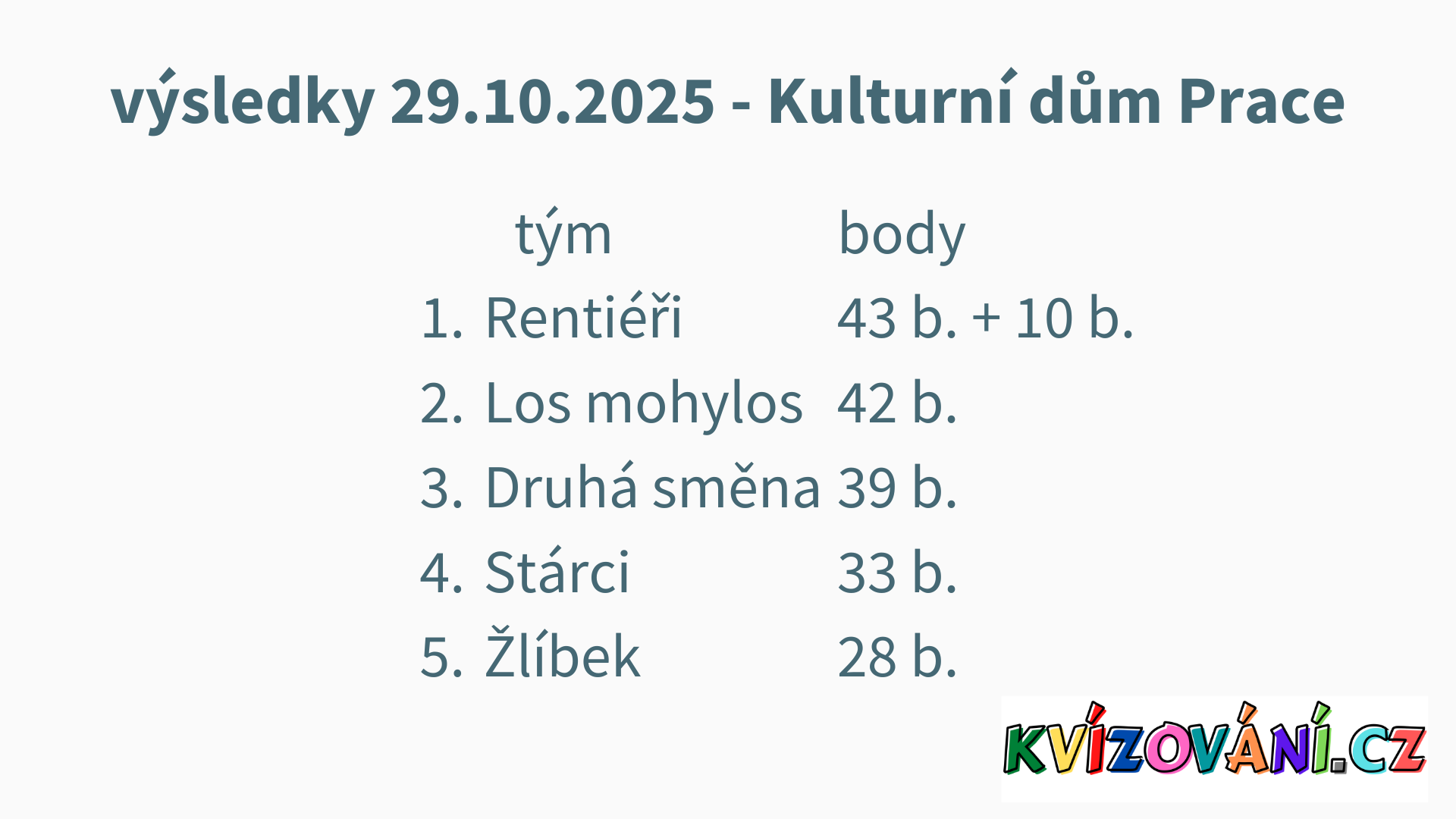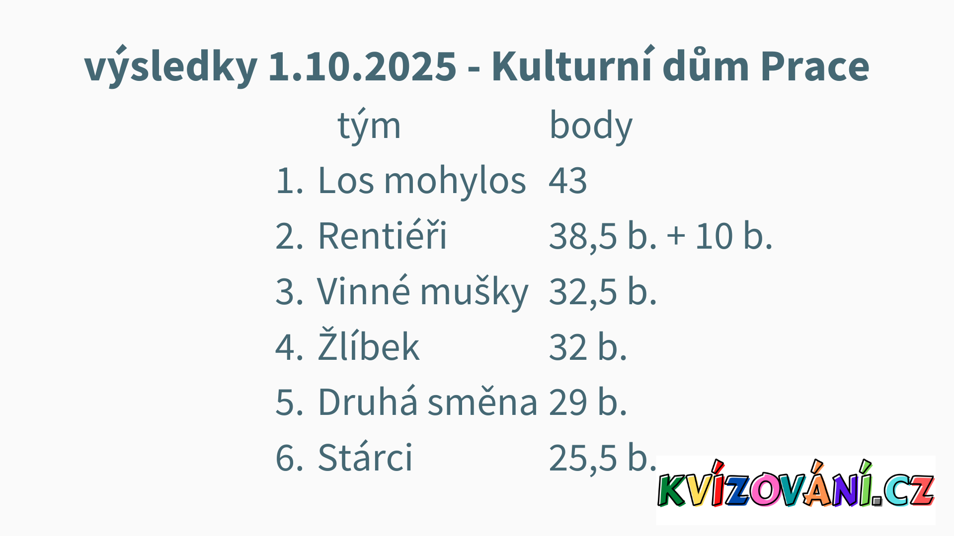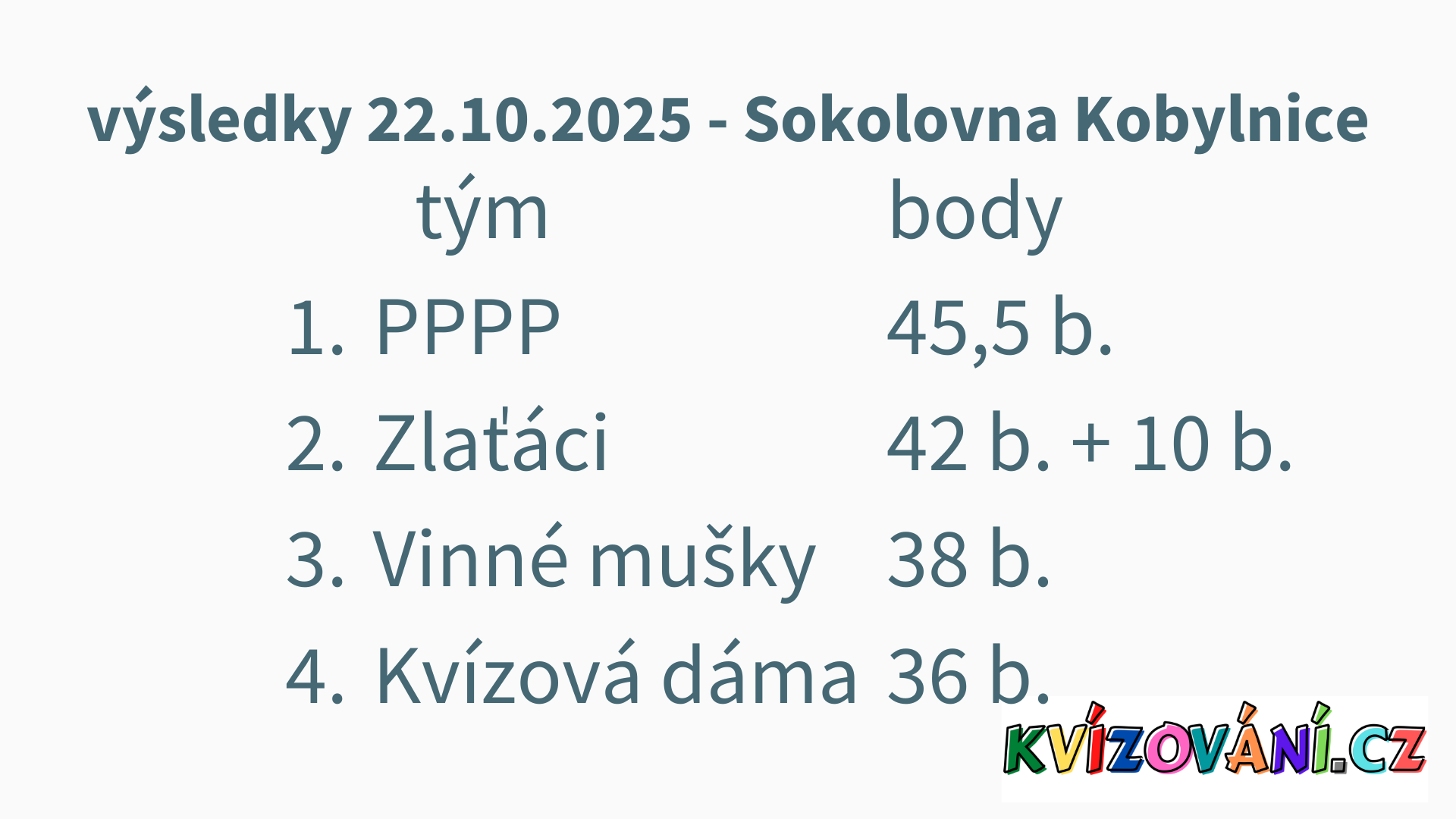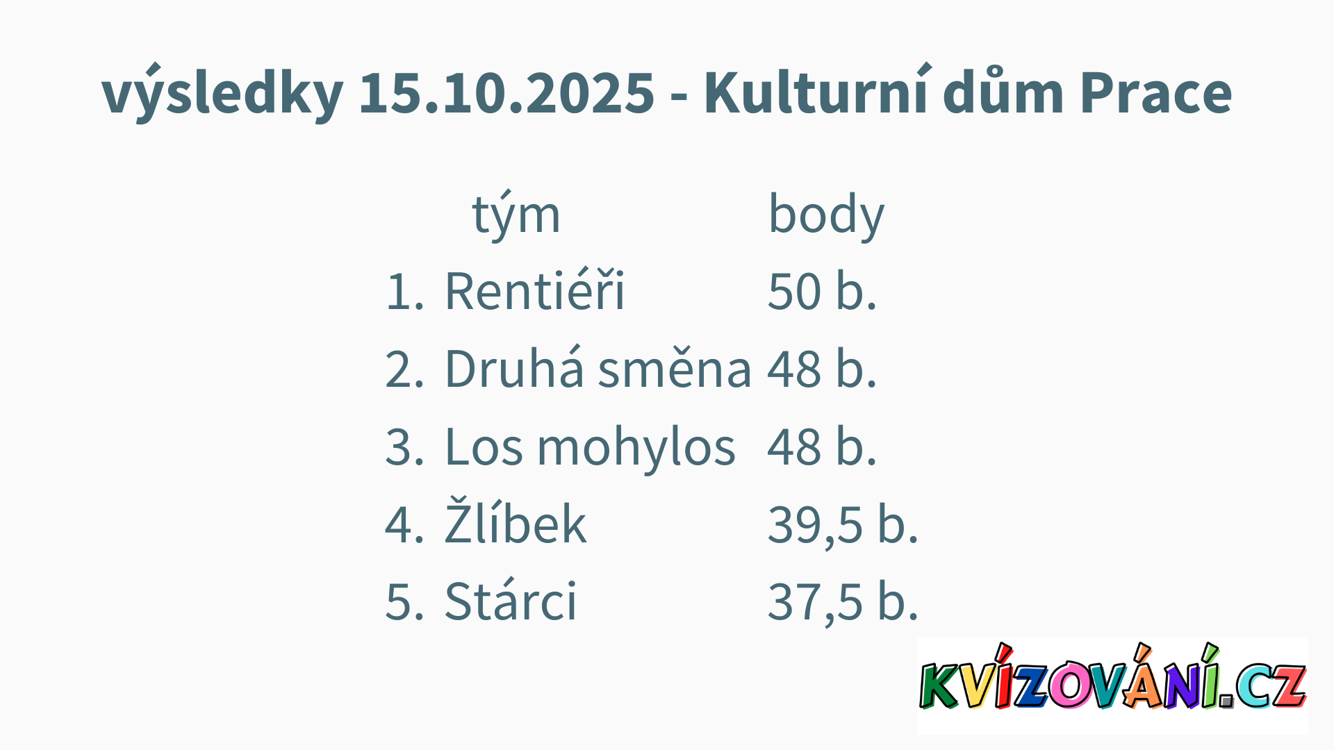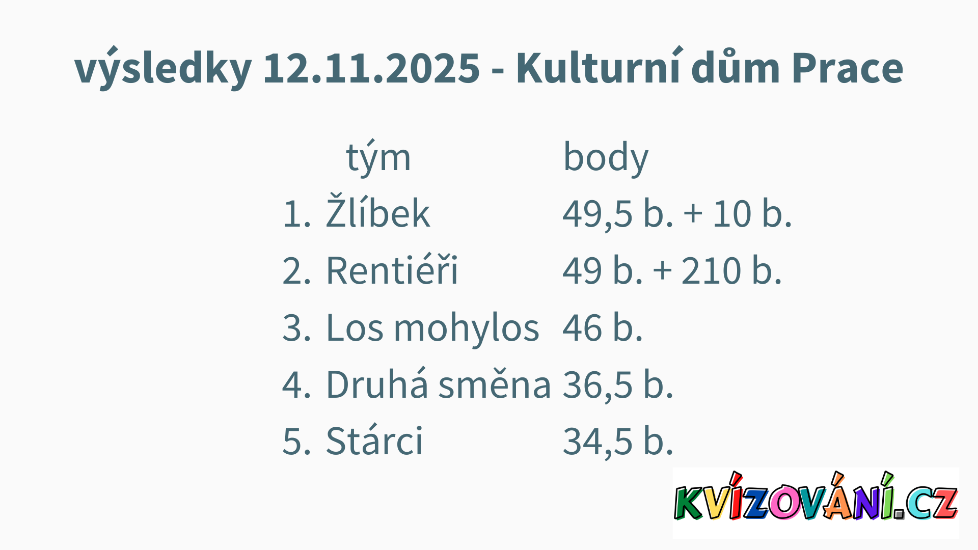 Výsledky U Paseků - pátek