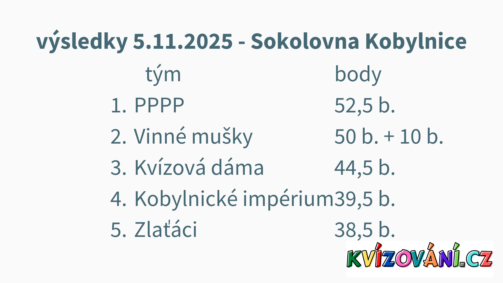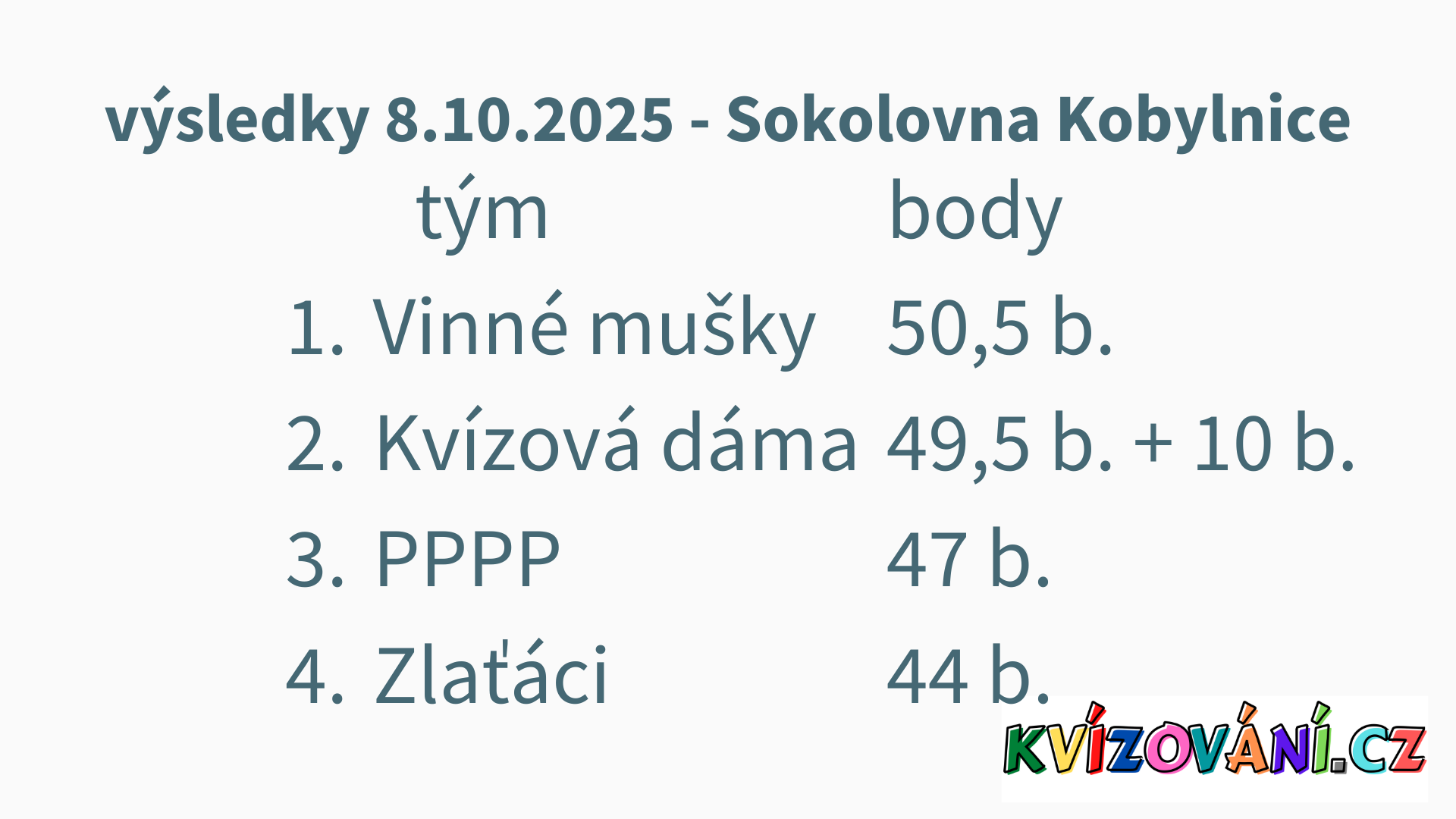 Výsledky Kobylnice/Prace - Středa