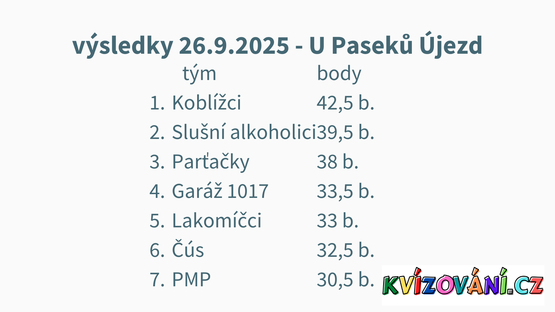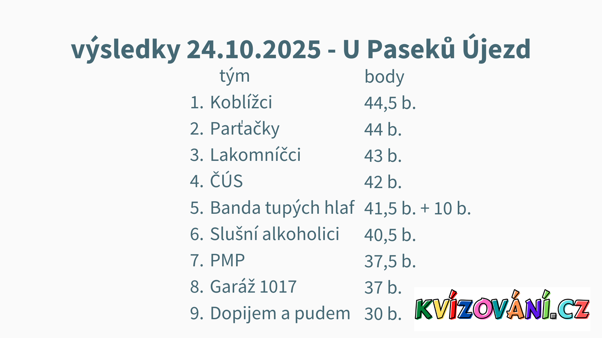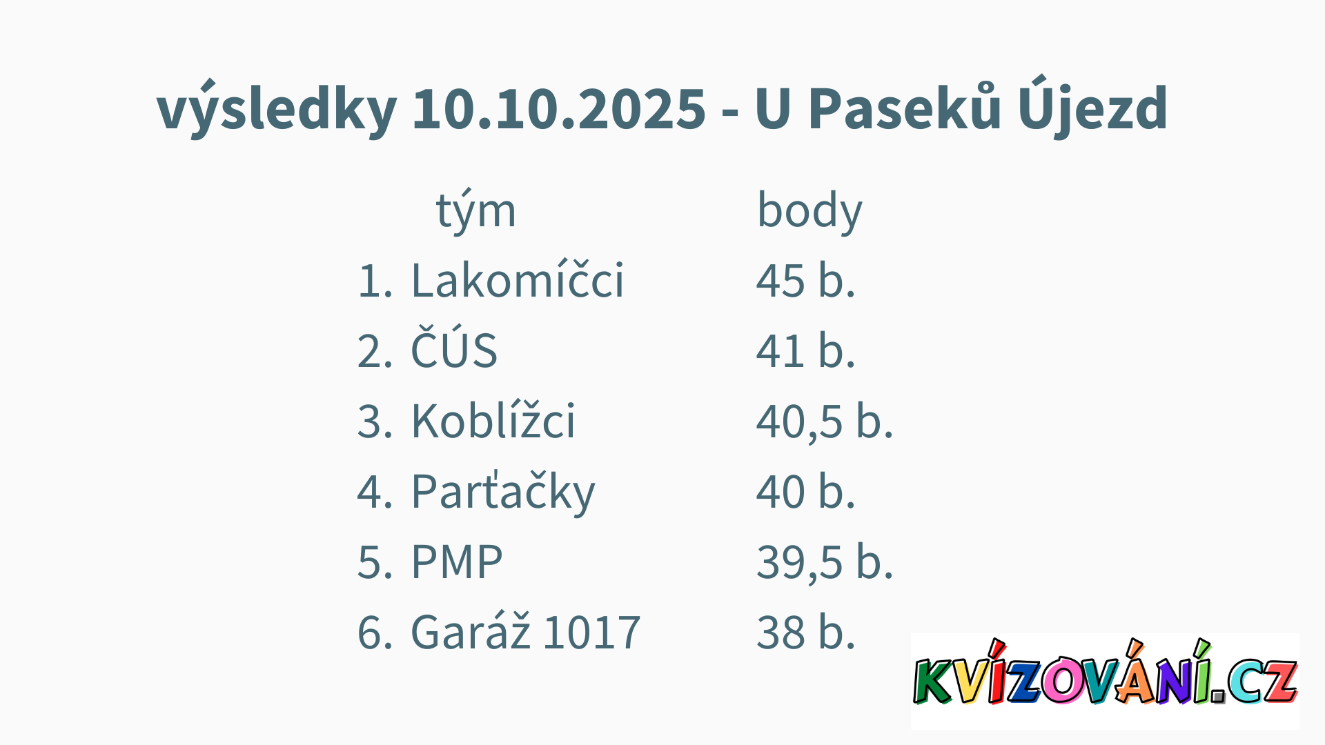 Výsledky U Paseků - pátek